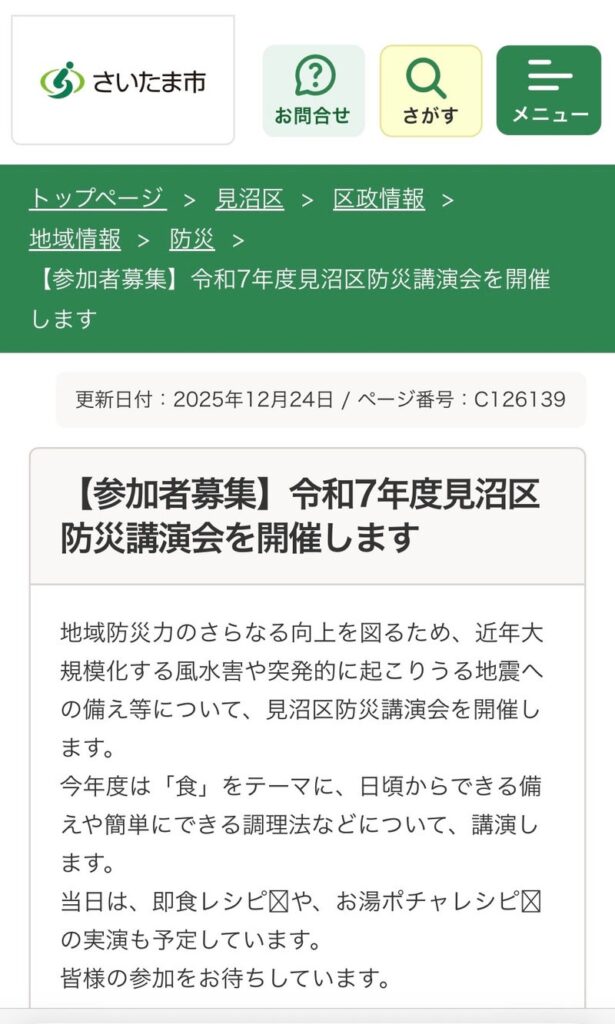 さいたま市/【参加者募集】令和7年度見沼区防災講演会を開催します